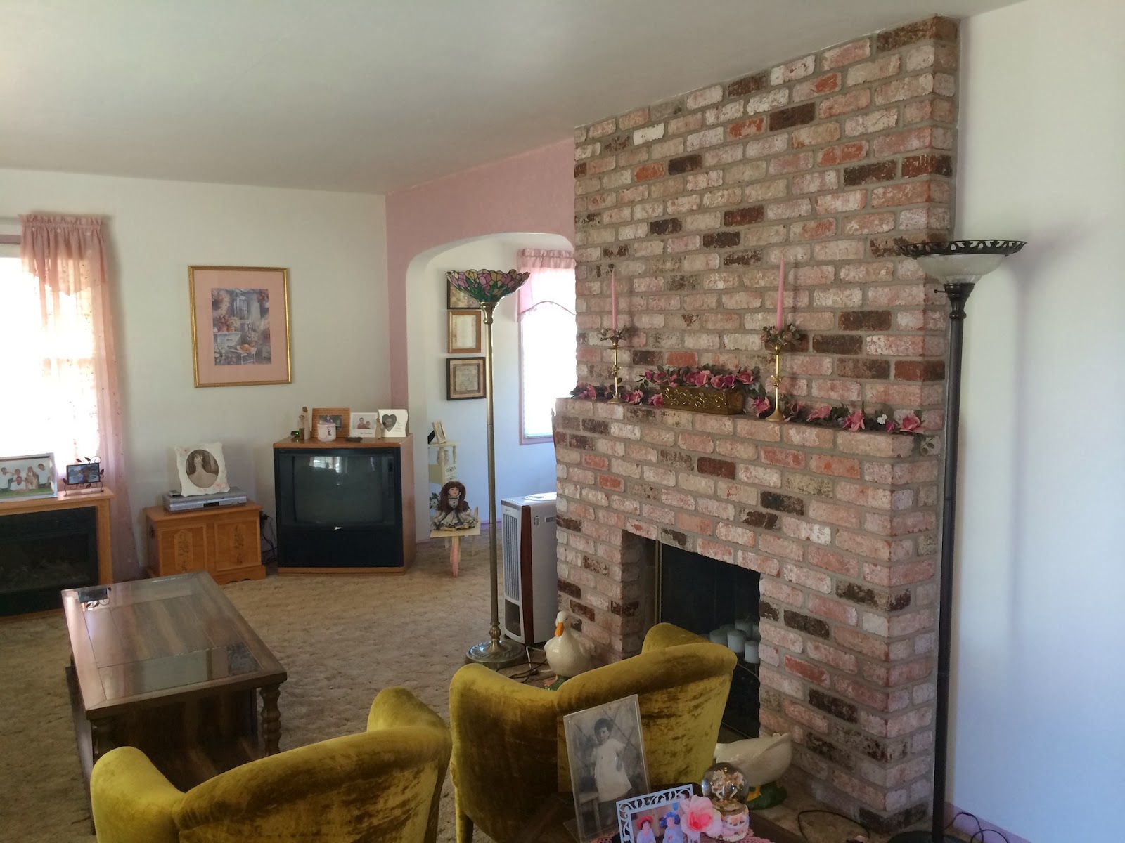 we feared the fireplace might be pink too, but it was just pink by association... phew!